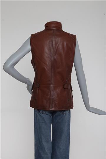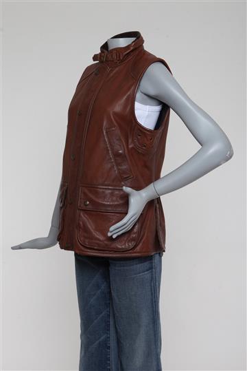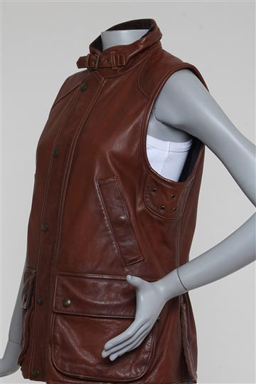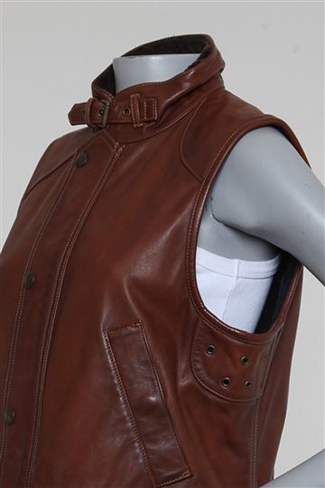 - Colete em couro rugoso e encorpado com forro em flanela- Marrom estonado total- Modelagem reta- Gola alta arredondada com fivela metálica frontal para ajuste- Cavas laterais amplas com palas inferiores e ilhóses metálicos aplicados- 4 bolsos frontais funcionais com abas e abotoamento para fechamento- Abotoamento central posterior para melhor ajuste ao corpo- Fendas posteriores com abotoamento- Forro estampado interno- Comprimento ligeiramente alongado- Fechamento frontal por abotoamento com botões metálicos e zíper tratorado oculto