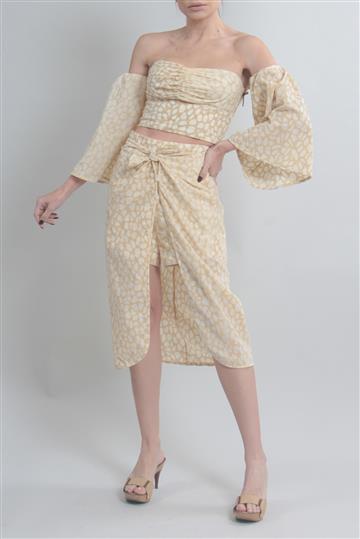 Conjunto Paula Raia Top e Shorts Saia Texturizado Bege