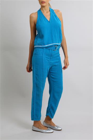 Conjunto Paula Raia Calça,Top, Regata e Cinto Camurça Azul