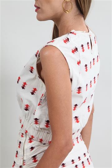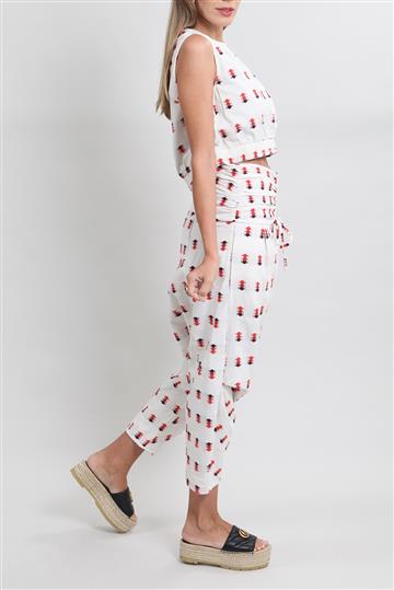 - Conjunto em tecido leve e ligeiramente encorpado à base de algodão com viscose