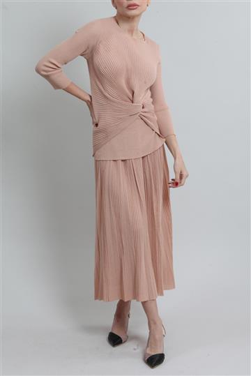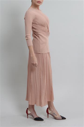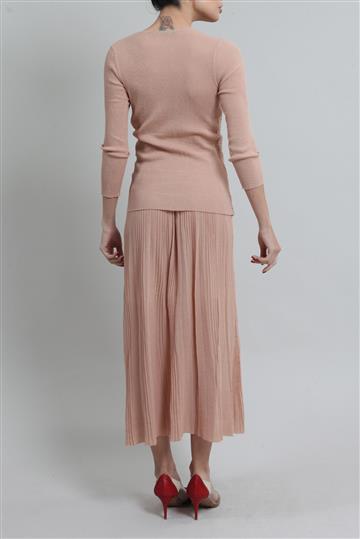 - Saia possui modelagem evasê inteiramente plissada
