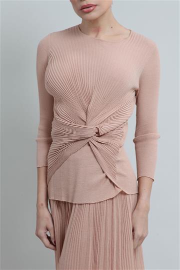 - Corpo inteiramente drapeado com nó central decorativo
