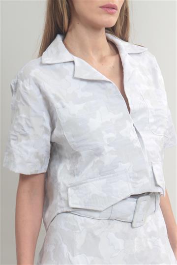 - Dois bolsos superiores e duas palas inferiores aplicadas