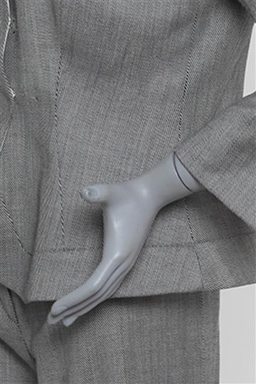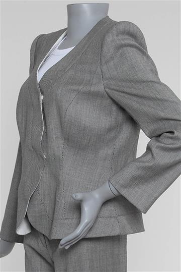 - Fechamento frontal por abotoamento duplo e zíper oculto