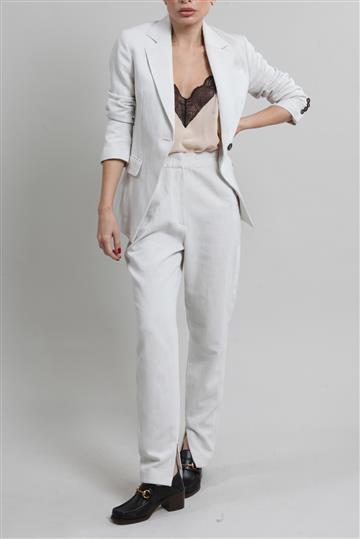 - Blazer possui modelagem reta e ligeiramente acinturada