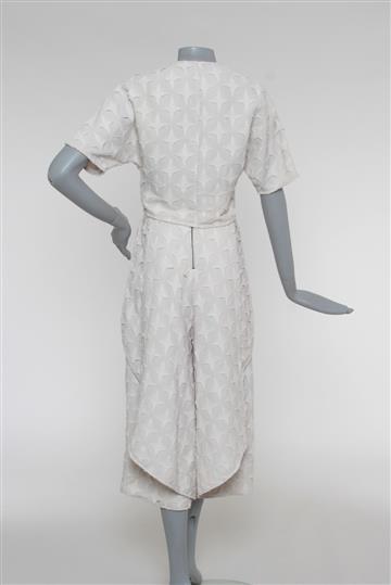 - Calça possui modelagem reta e ampla estilo pantacourt