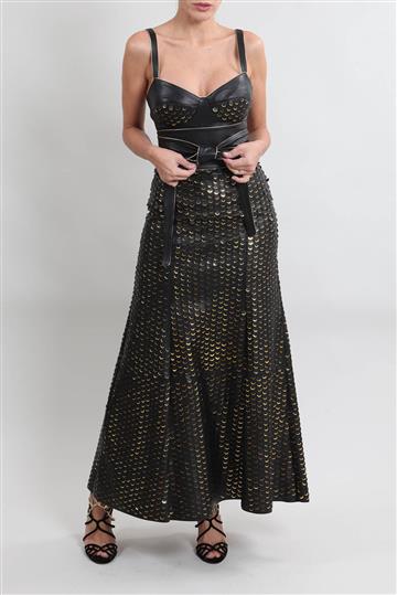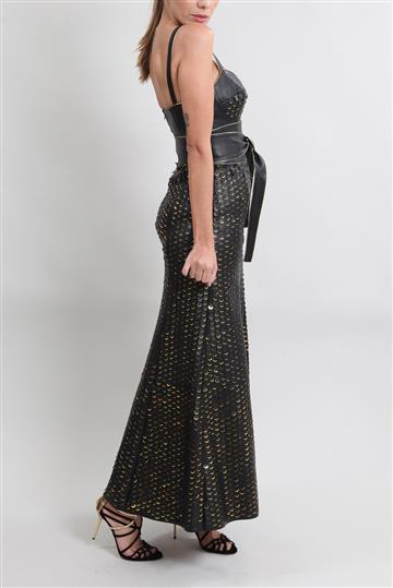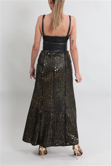 - Saia possui modelagem evasê com recortes para maior fluidez