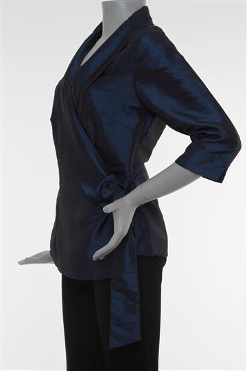 - Decote alongado em 'V' com lapelas arredondadas