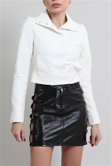 - Jaqueta em couro texturizado e encorpado de aspecto envernizado