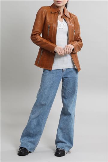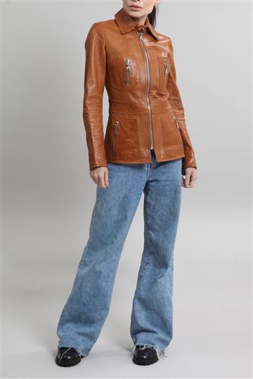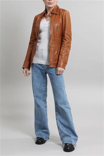 - Jaqueta em couro liso e encorpado