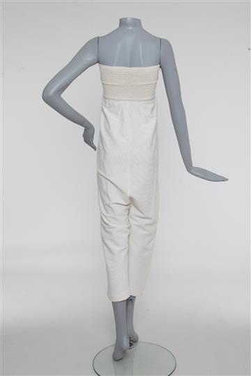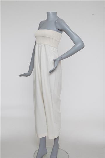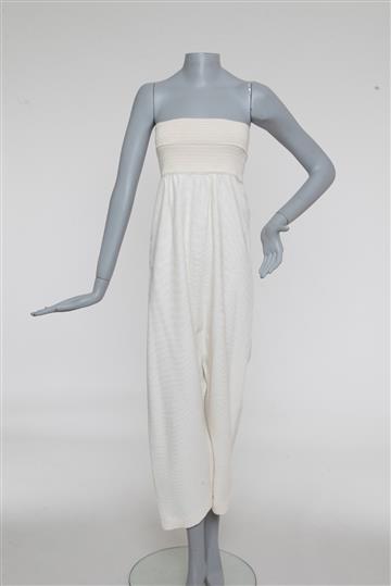 - Macacão em tecido texturizado com detalhe em crochê