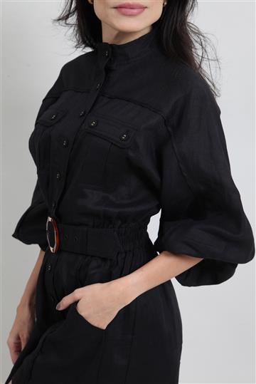 - Recorte central com elasticidade e cinto para melhor ajuste ao corpo