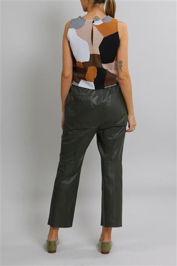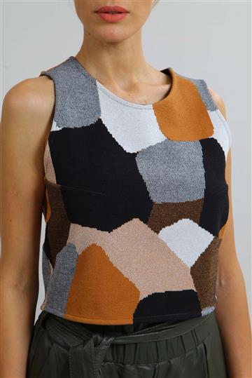 - Decote arredondado alto com pequena abertura posterior e abotoamento delicado para fechamento