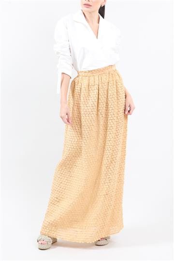 Saia Paula Raia Longa de Seda com Aplicações Círculos Bege