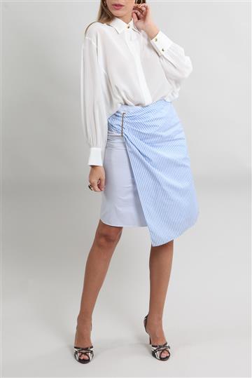 - Saia em lã virgem encorpada e estruturada