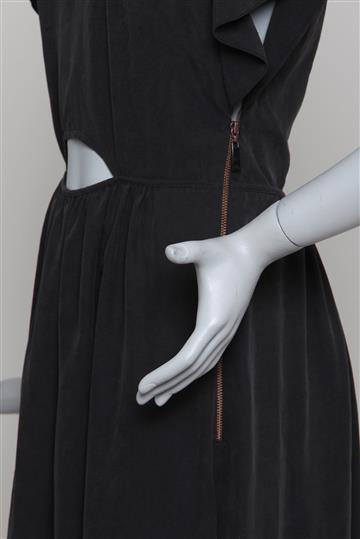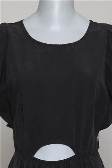 - Cavas laterais alongadas com mangas curtas e fluidas aplicadas