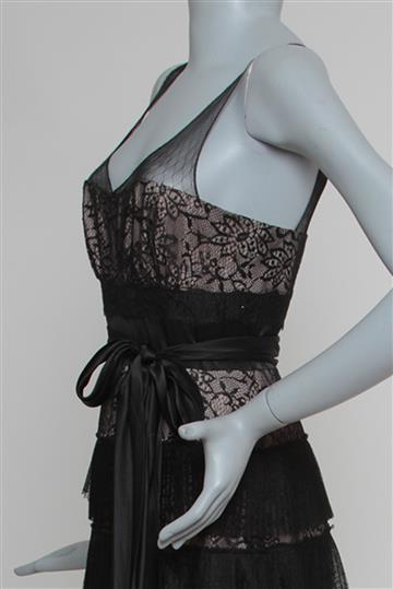 - Pala central em cetim com amarração posterior para ajuste ao corpo