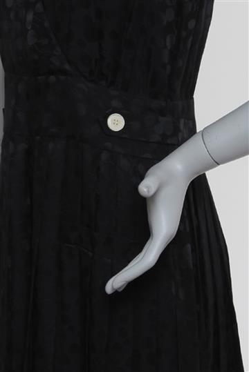 - Alças amplas com pregueado superior e abotoamento decorativo
