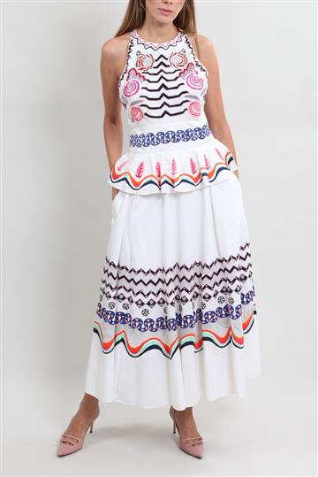 - Saia godê com pregas aparentes e recorte transparente inferior