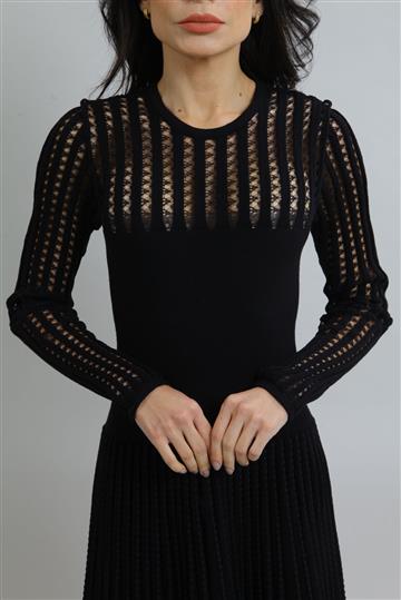 - Tramado ornamentado por ponto ajour com recortes vazados e sutil transparência