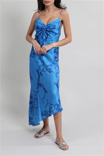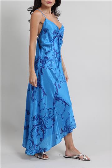 - Vestido em tecido acetinado e fluido