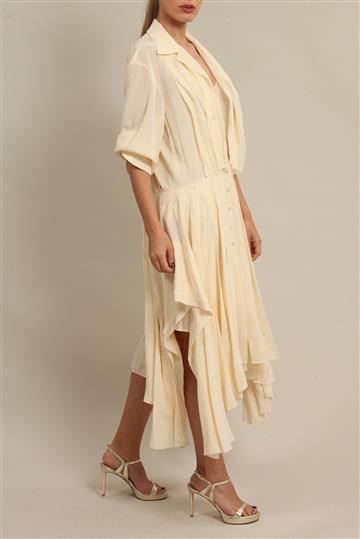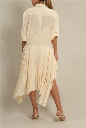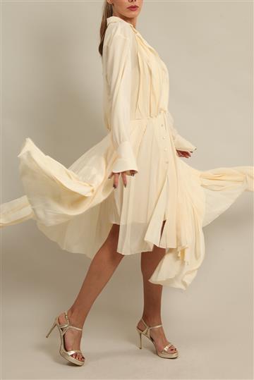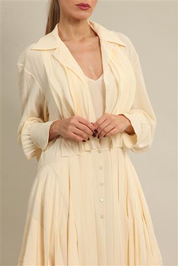 - Mangas longas retas com pregueado inferior e punhos amplos