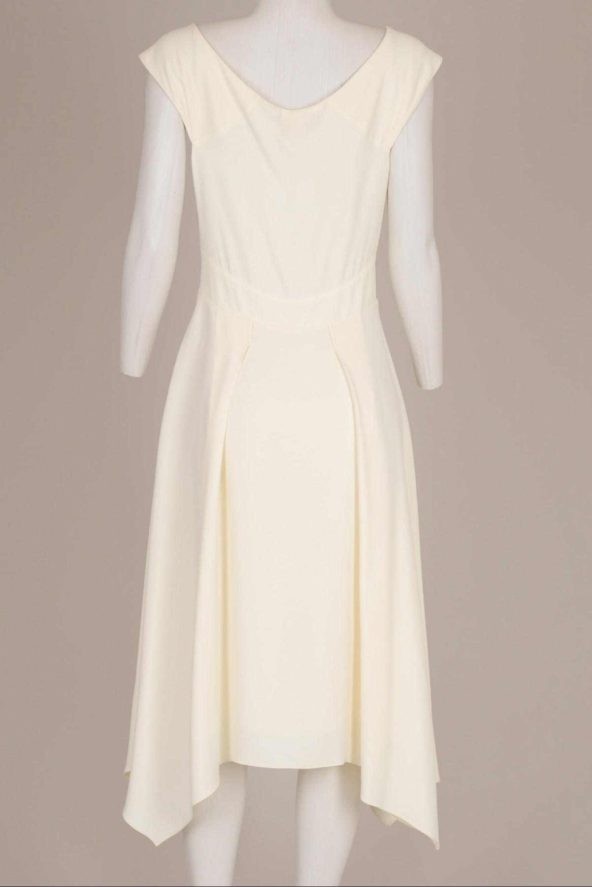 - Vestido crepe de seda- Midi- Sem mangas- Alças largas- Decote com detalhe cruzado- Pregas- Saia assimétrica- Fechamento po zíper invisível na lateral