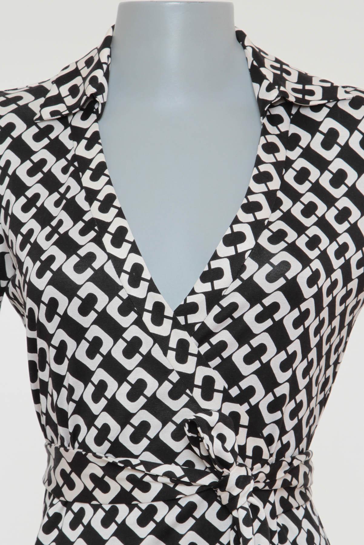 - Decote em 'V' alongado e transpassado