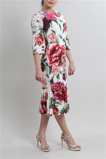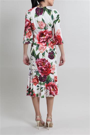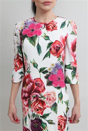 - Vestido em viscose encorpada com forro em seda e detalhes em renda