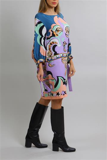 - Mangas 3/4 sutilmente bufantes com pregueado inferior