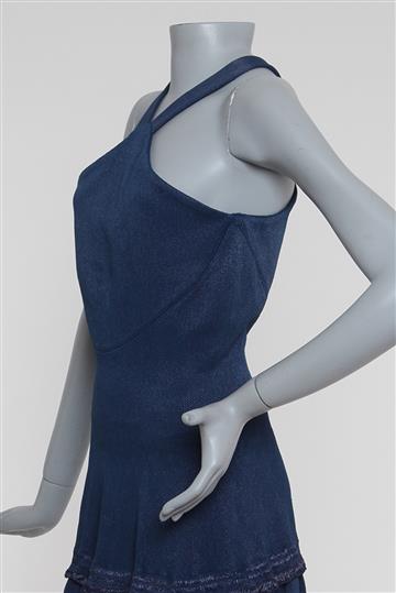 - Vestido em tricot encorpado estilo bandage com detalhes plastificados
