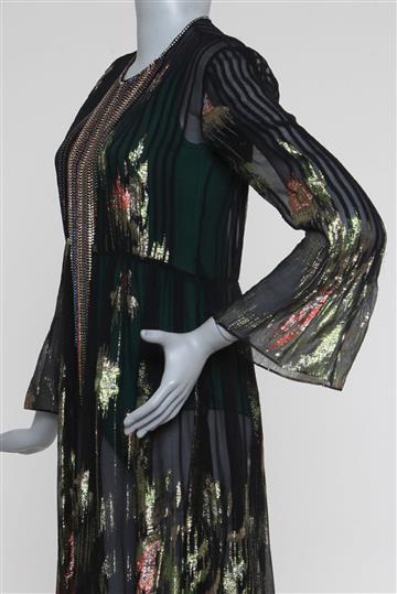 - ?Tramado ornamentado por motivos florais com brilho decorativo