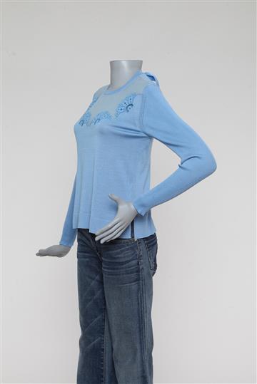 - Decote arredondado alto com franjas de strass aplicadas ao redor