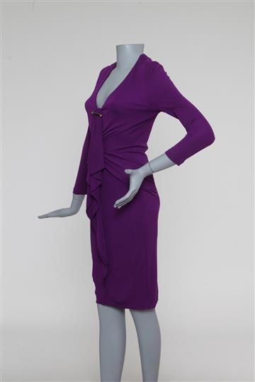 - Mangas 3/4 - Drapeado frontal com pregas aparentes e pala fluida centralizada