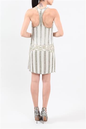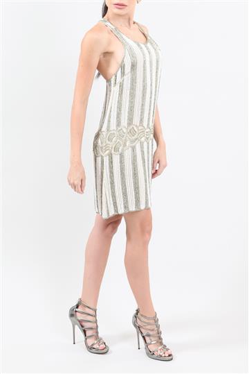 - Vestido em tecido leve revestido por canutilhos