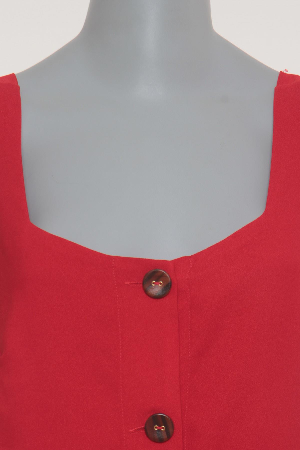 - Fechamento frontal por abotoamento com botões ornamentados.