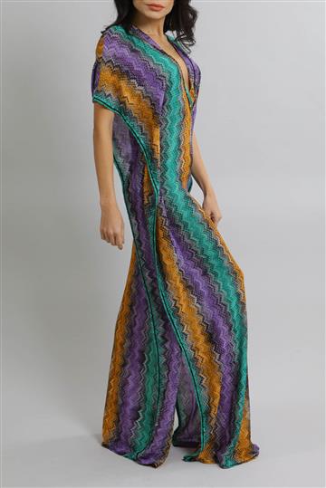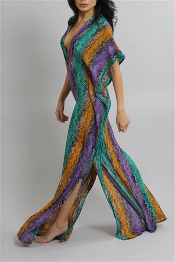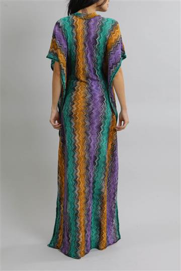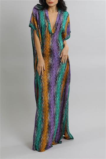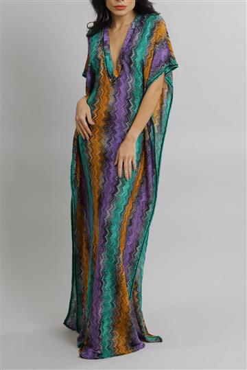 - Kaftan em tricot leve com fios de lurex aplicados à trama