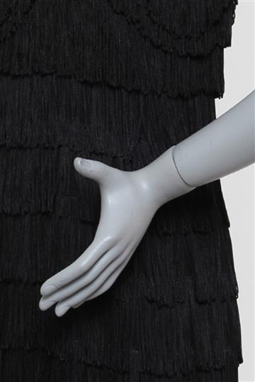 - Inteiramente revestido por franjas acetinadas com fluidez
