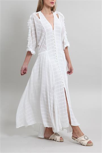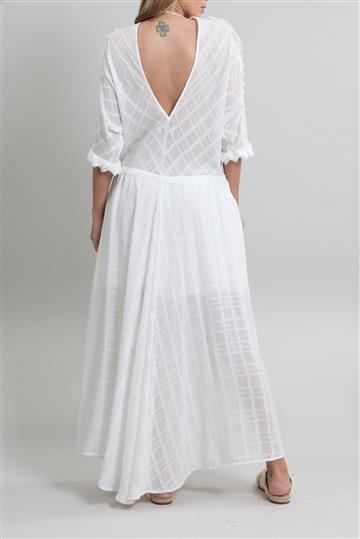 - Mangas 7/8 aplas estilo morcego com pequenos babados aplicados