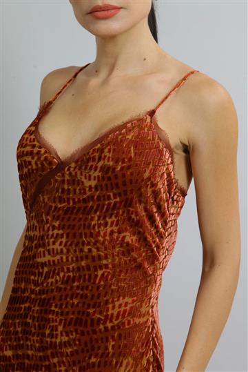 - Vestido em tecido leve e fluido de toque aveludado à base de seda com viscose