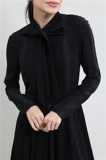 - Decote arredondado com gola padre e tiras aplicadas para amarração decorativa