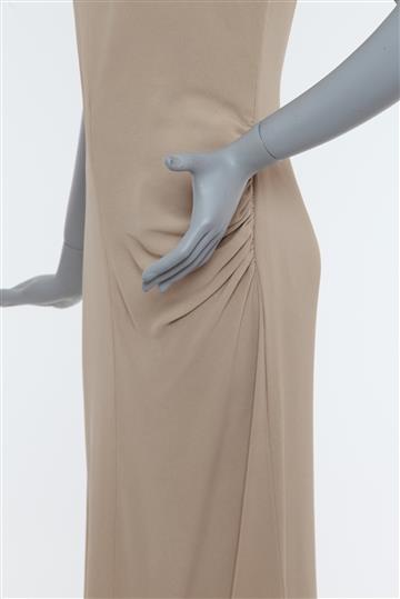 - Vestido em crepe com detalhes em pele