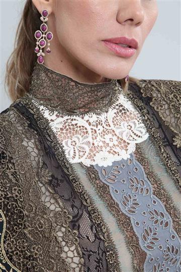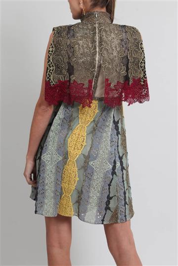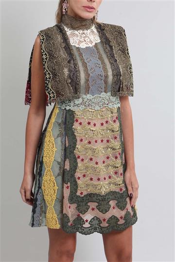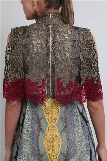 - Vestido em mix de rendas com base em tule