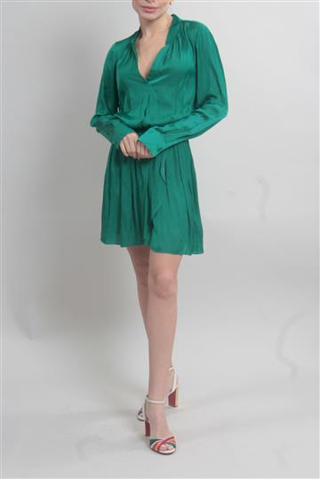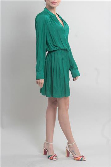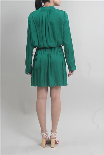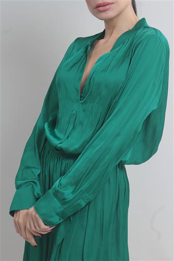 - Mangas longas pregueadas com punhos estruturados e abotoamento