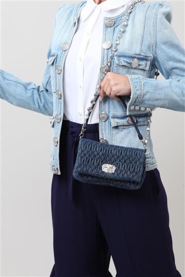 Bolsa Miu Miu Matelasse com Cristais Jeans